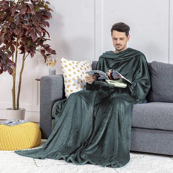 La cobija con mangas verde es la combinación perfecta de comodidad y estilo. Diseñada con un suave tejido que te mantendrá abrigado y cómodo, mientras que las mangas te permiten moverte con libertad. Disfruta de tus momentos de relajación con esta lujosa cobija que te hará sentir exclusivo.